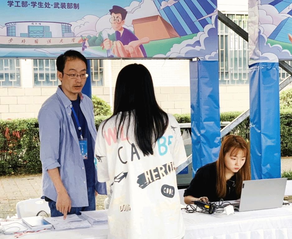 学院的书记以及院长来到迎新现场,亲切慰问辛勤的志愿者们,询问新生的报道状况。