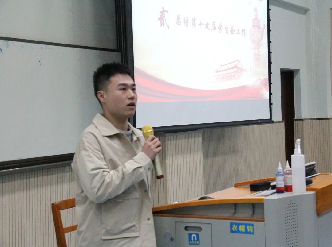 第二十届分团委副书记杜刘秦陇同学首先回顾了自己过去的一年中所做的工作并从中得出心得向新一届学生会分享。第一、勇于试错乐于接受部门工作;第二、学会合作、学会分享;第三、注重自己的学业。在最后希望学生会全心全意地为同学们服务,做好学院与同学们的桥梁、牢记责任、发光发热。