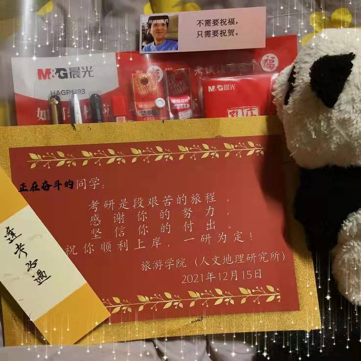 此次慰问特别准备“笔果”福袋,包括特制文具包、祝福贺卡、糖果以及精美书签,福袋寓意深厚,表达了学院对考研学子的美好希冀。考研是段艰苦的旅程,上岸只是结果,在努力的过程中发现全新的自己才是真正的目标。感谢你的努力,坚信你的付出,祝同学们都能顺利上岸,一研为定!