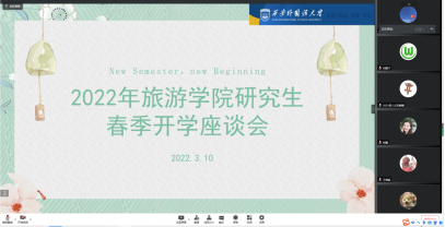 新学期,新气象,在疫情严格的防控下同学们顺利返校,旅游学院在3月10日,组织全体研究生召开2022春季学期返校学生座谈会。此次年级座谈会主要以疫情防控、意识形态、日常生活等方面为主要内容开展。会议由研究生辅导员秦怡主持。