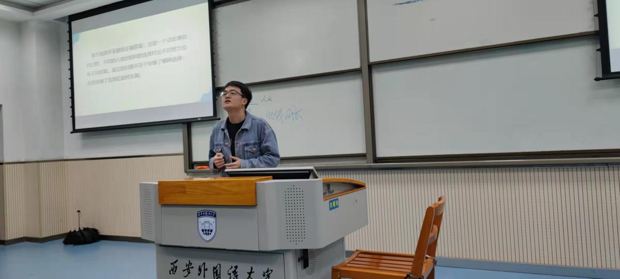 黄清燕博士结合过往经历,鼓励选择考研的同学们要坚定信念,一步一个脚印,扎扎实实复习各门课程,同时深入了解志愿报考的院校专业近几年招录情况,有的放矢的选择学校和专业,在考研复习进程中需要把握的关键点,科学合理分配复习时间提高考研成功率。胡森文老师在谈到就业时,强调抓住“金九银十”的企业校招规律,密切关注学校就业指导信息的发布,做好面试前的准备工作。随后,杨军辉老师介绍了就业中容易忽视的几个专项计划(农村义务教育阶段学校教师特设岗位计划、高校毕业生“三支一扶”计划和大学生志愿服务西部计划),鼓励同学们走到国家需要的地方发光、发热。最后,苏红霞副院长对国际留学项目(英国、美国)最新变化进行了解读,建议同学们将毕业升学的选择放宽放远。互动环节,老师们对同学们在考研就业中存在的困惑一一解答,并从学习、生活多个角度勉励大家,抓住当下,努力学习成为更好的自己。辛健老师在总结时说到人生的每个选择都会演化出不同的故事,这里没有标准答案,无论做出哪种选择,力求问心无愧,脚踏实地,走好人生的每一步。
