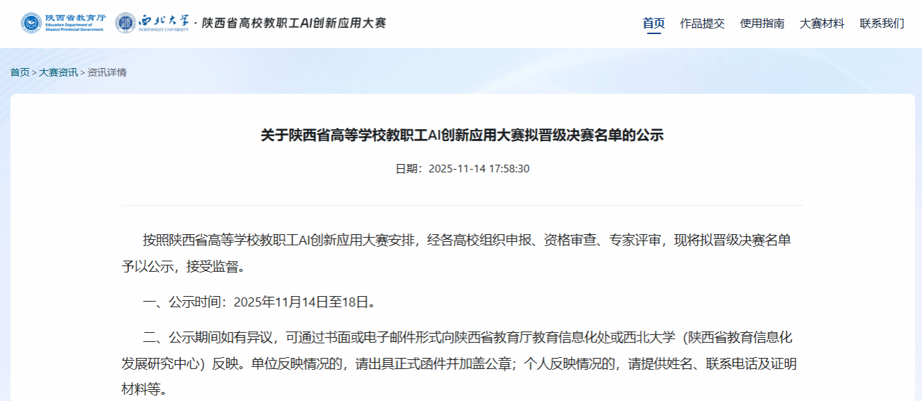 近日,由陕西省教育厅主办、西北大学(陕西省教育信息化发展研究中心)承办的首届陕西省高校教职工AI创新应用大赛圆满收官。大赛以“‘AI+教育’数字智能转型”为主题,旨在推动“AI+教育”创新应用实践,提升高校教师人工智能素养,促进人工智能与教育融合发展。我校亚博体育
